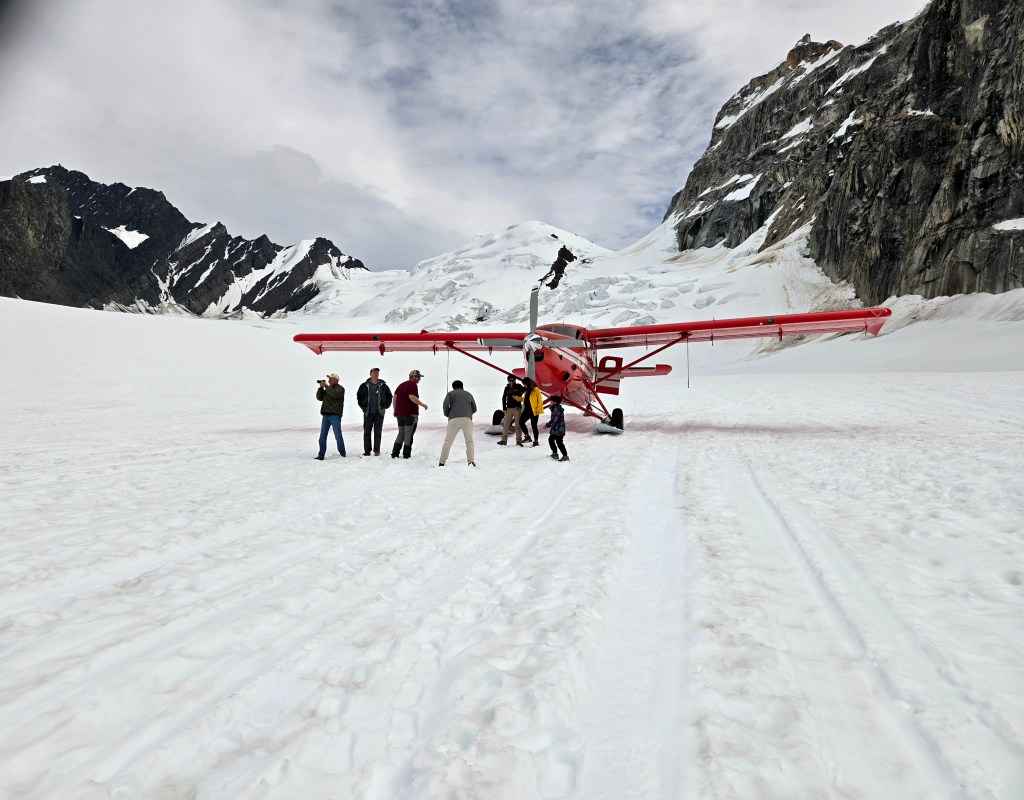 C) Talkeetna and Flightseeing: After Hatcher Pass, we continued on to Talkeetna, a small, charming town that serves as a gateway to Denali. Talkeetna has a laid-back, artsy vibe, with local restaurants, souvenir shops, and several adventure outfitters. It’s also a hub for activities like rafting, hiking, and flightseeing. We first completed our flightseeing tour that was prebooked, after which we spent some time walking around town and had lunch before continuing onto Healy. We chose to do our flightseeing with K2 Aviation, and it ended up being one of the absolute highlights of the entire trip. We selected the Denali flightseeing tour with glacier landing, which lasts about two hours total. The aircraft is a small fixed-wing plane, typically seating around 6–10 passengers, depending on configuration. These planes are designed specifically for mountain flying and glacier landings. We checked in about 30 minutes before departure, where they recorded weights for balance and provided overboots to wear over regular shoes for the glacier landing. I wore comfortable closed-toe shoes, layered clothing, and brought sunglasses, which are highly recommended because it gets extremely bright once you’re over the snow and ice. They also provide sunglasses if you don’t have your own. I was incredibly lucky to get a seat right in the front next to the pilot, which was hands-down the best seat in the plane. The views from the front and side were absolutely spectacular. The flight itself was breathtaking from the moment we took off. We flew first over rivers, forests, and rolling terrain, gradually transitioning into the Alaska Range, where the landscape becomes more rugged, jagged, and snow-covered. On our day, the weather was crystal clear and sunny, which is not guaranteed in Alaska and we felt incredibly fortunate. We were able to see Denali, standing at 20,310 feet, along with Mount Hunter (about 14,573 feet) and Mount Foraker (about 17,400 feet). Seeing all three peaks clearly in one flight is not common, and the pilots emphasized how lucky we were with the conditions. The glacier landing itself was incredibly smooth. We spent about 20 minutes on the glacier, surrounded by endless white snow and towering peaks. It felt surreal, quiet, vast, and humbling all at once. Being able to walk around, take photos, and just stand there in the middle of the Alaska Range was unforgettable. On the return flight, the landscape subtly changed. As we moved away from the high peaks, the terrain softened into braided rivers, glacial runoff, and greener valleys, offering a completely different perspective of Alaska’s scale and diversity. We chose K2 Aviation because it is widely regarded as one of the most reliable operators for Denali views, especially when weather conditions are favorable. Talkeetna is known for having some of the highest chances of seeing Denali, compared to flightseeing options based farther away. There are other reputable flightseeing companies as well, including Talkeetna Air Taxi and Denali Air. Some operators based near Denali National Park may offer flights that circle the Alaska Range, but not all guarantee views of Denali’s summit, depending on route and weather. You may also see helicopter tours offered in some areas. While helicopters can offer more maneuverability, fixed-wing flightseeing is generally preferred in Alaska for longer scenic routes, smoother glacier landings, greater range, and a more immersive sense of scale. For us, the plane experience felt more expansive and better suited to covering the vast Alaska Range.