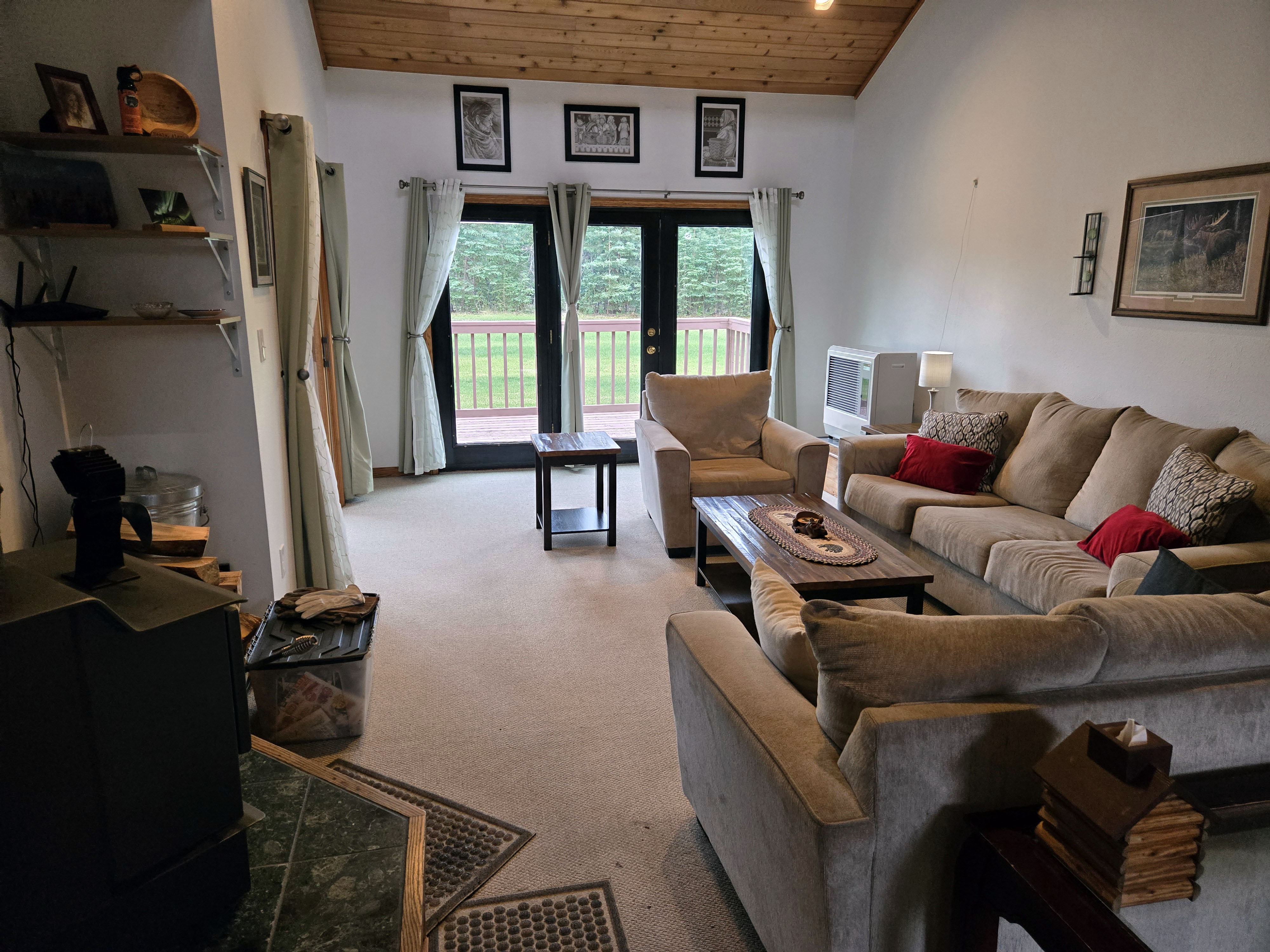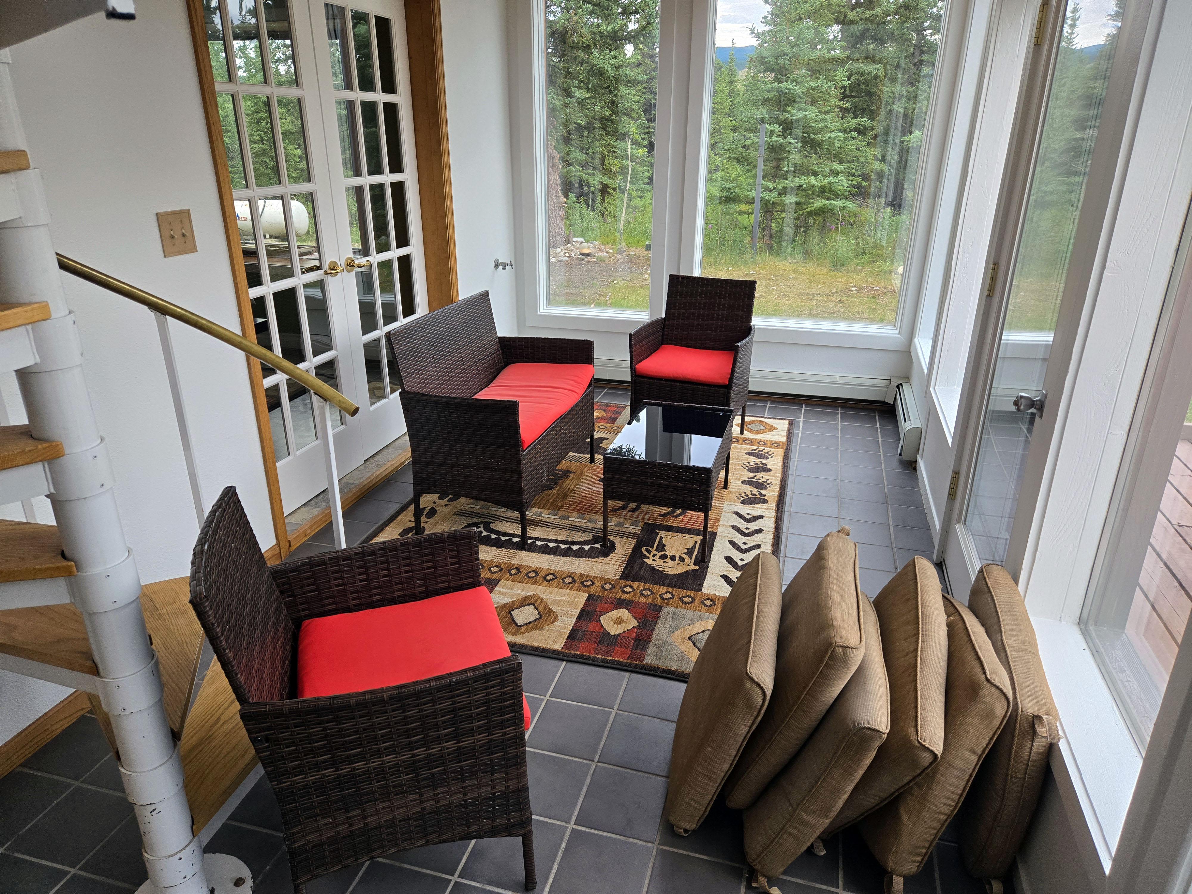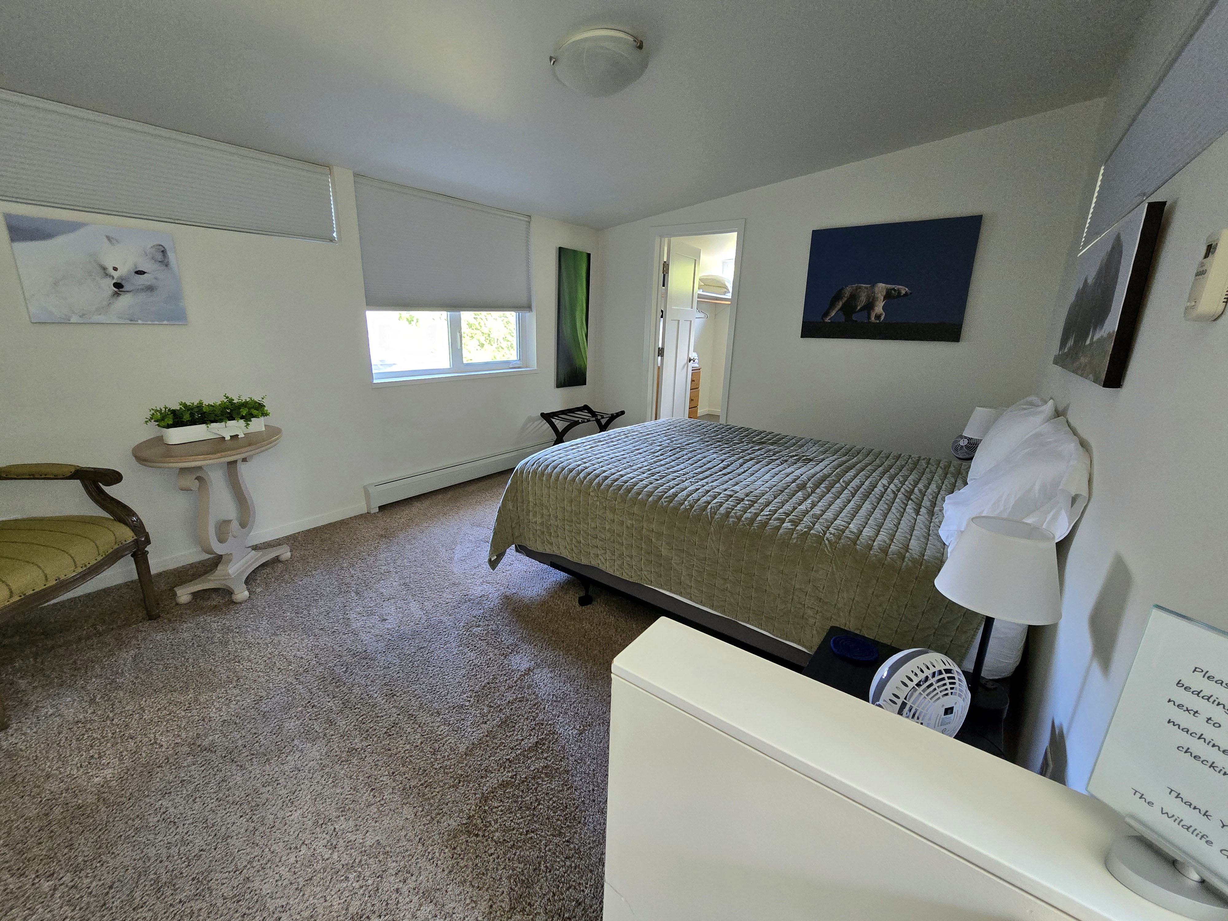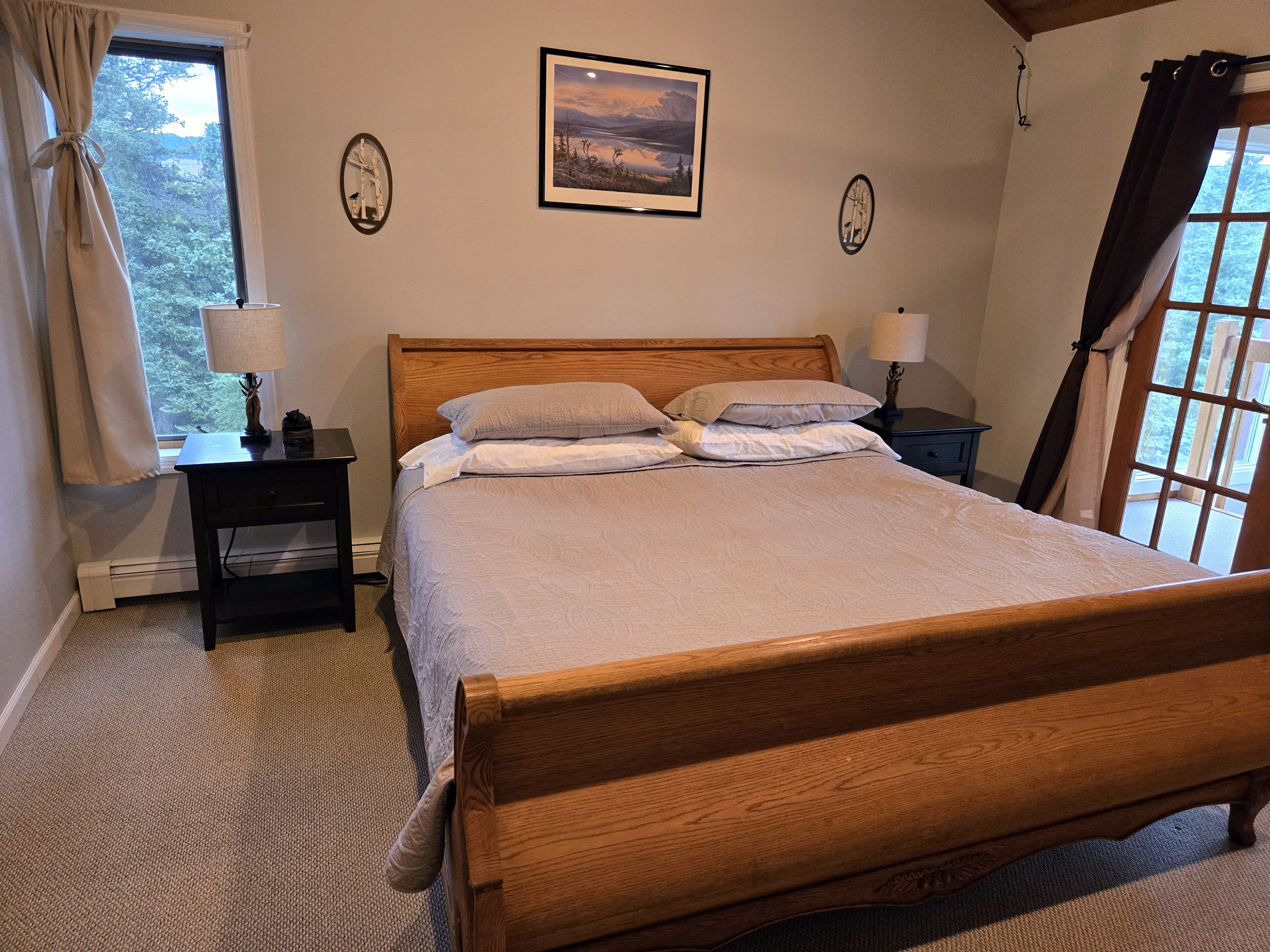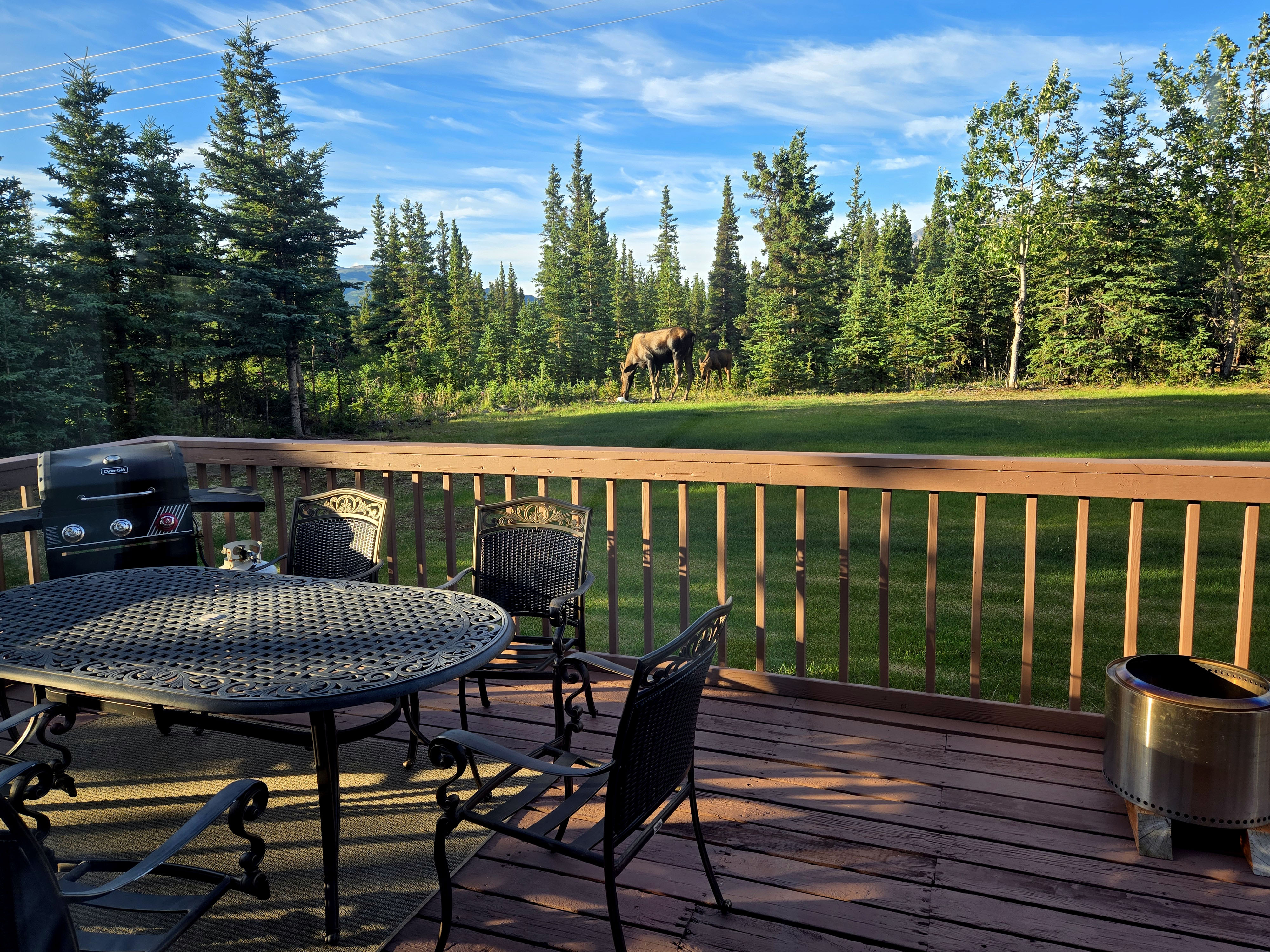 Healy (Base for Denali National Park): When visiting Denali National Park, many travelers stay in the Denali town just outside the park entrance, where there are several hotels, lodges, and tour-oriented accommodations. There are also limited lodging options inside the park itself, but these book up very early and typically offer fewer amenities and less space. For families or longer stays, finding accommodations that balance comfort with access to the park can be challenging. Given our needs, we chose to stay in Healy, about 20–25 minutes from the Denali Visitor Center, and it turned out to be an excellent decision. Our home felt like a well-appointed cabin in the woods, offering both comfort and immersion in nature. It had three bedrooms and two bathrooms, with a large master bedroom featuring a king bed, a TV, and a private balcony that connected to a sunroom below. The living room had great seating for a group, making it a comfortable place to relax together in the evenings. However, there was no TV in the living room, so group movie or TV nights weren’t possible. TVs were available in the bedrooms (at least two of the three), which worked fine but is worth noting if shared viewing is important to you. When we first checked in around 6–7 PM, the house felt quite warm, as it had been a warmer-than-usual day and there was no air conditioning. We contacted the host, who responded promptly and kindly explained that temperatures would drop quickly in the evening and that opening the windows would cool the house down. She was absolutely right. Within a short time, the house became comfortable, and we really appreciated her responsiveness and reassurance. The presence of window screens made this easy without worrying about mosquitoes. The gourmet kitchen was fully equipped and easy to cook in, and the large laundry room was well stocked, which was extremely helpful during a multi-day stay. The sunroom and outdoor deck overlooked a backyard that opened directly into forested land. One of the most unforgettable moments of the trip was seeing a mother moose and her calf wander into the yard, along with neighborhood rabbits grazing nearby. Blackout curtains were a huge plus given the long daylight hours, and with grocery stores and gas stations nearby, Healy offered a great balance between wilderness and convenience.