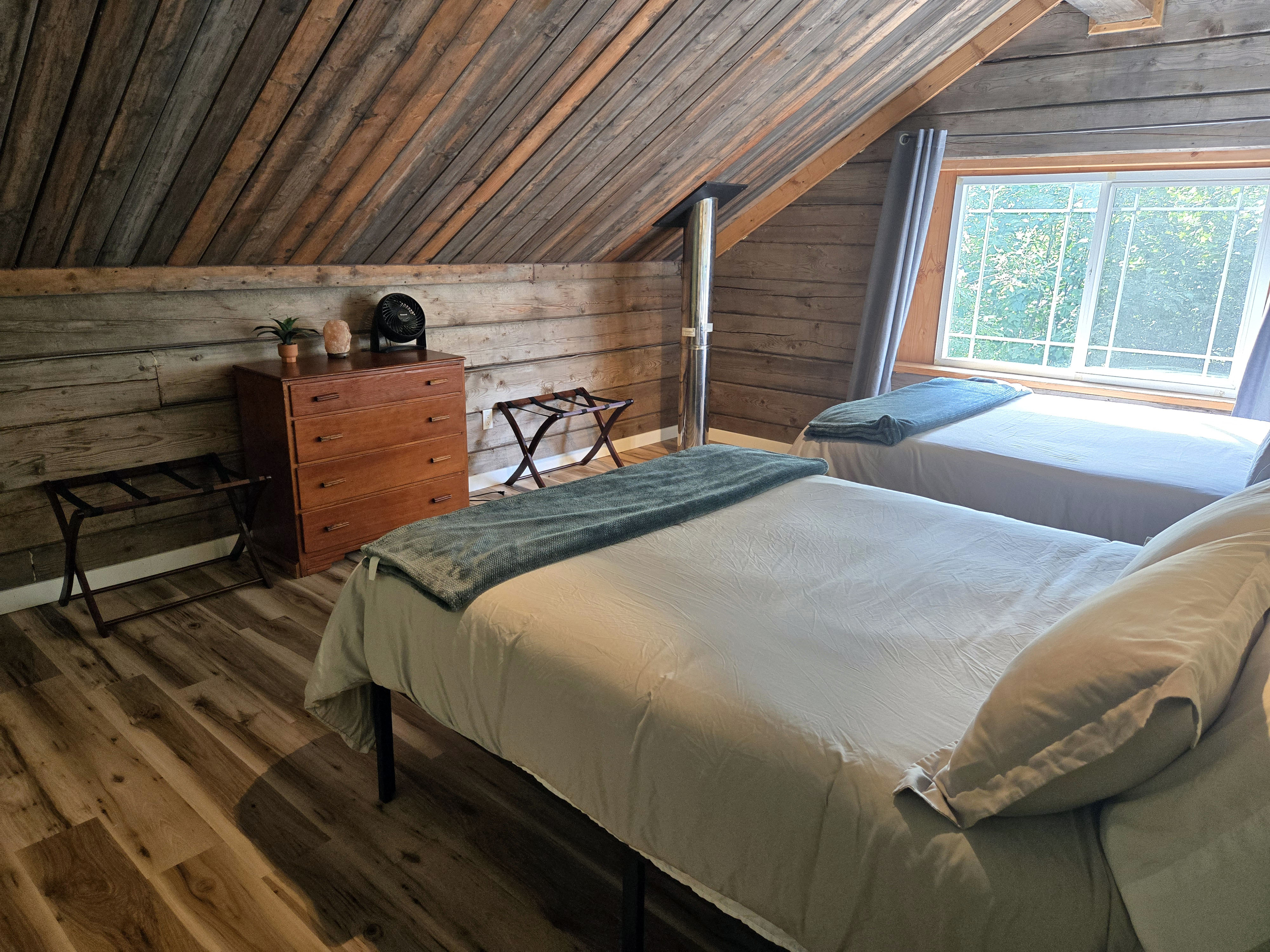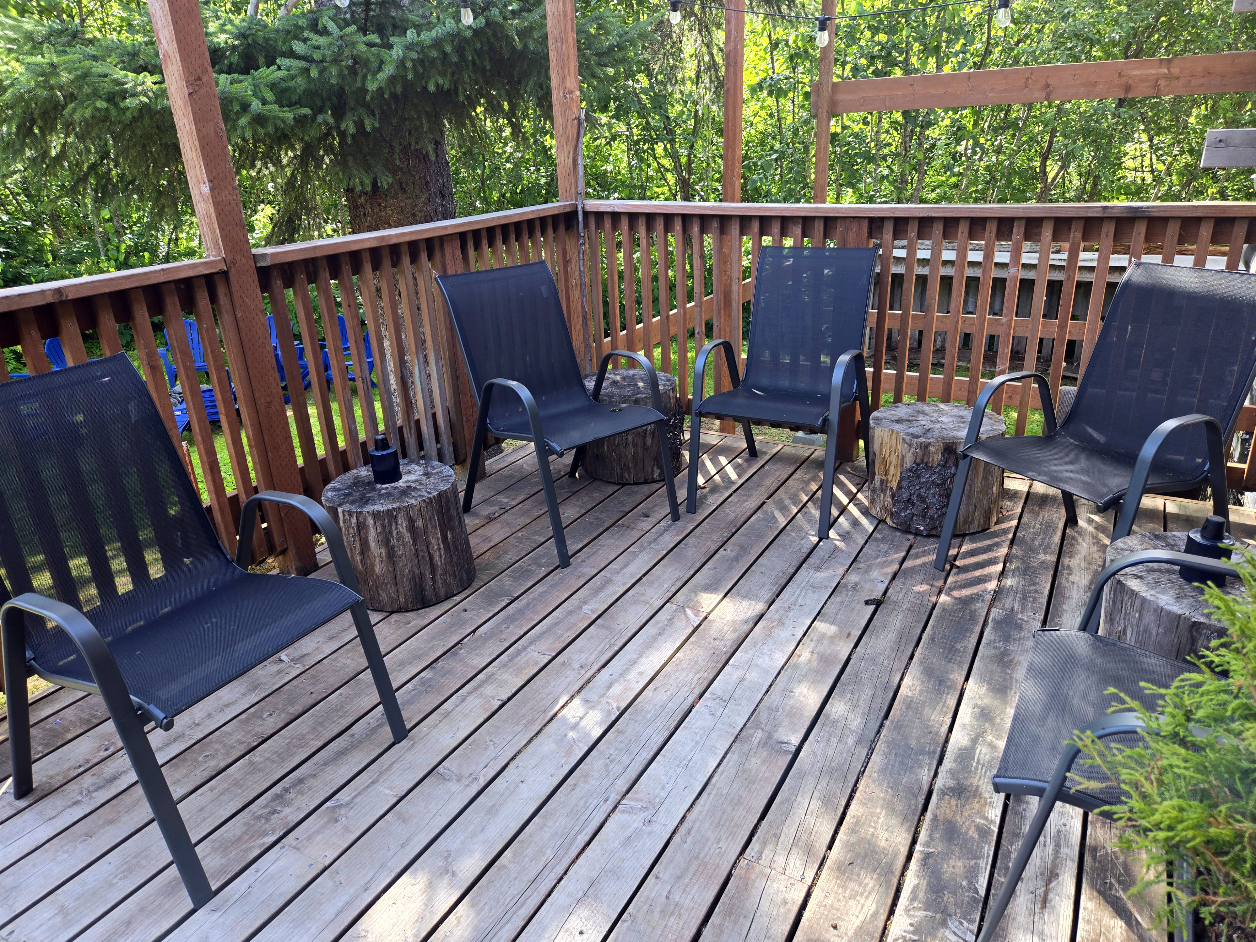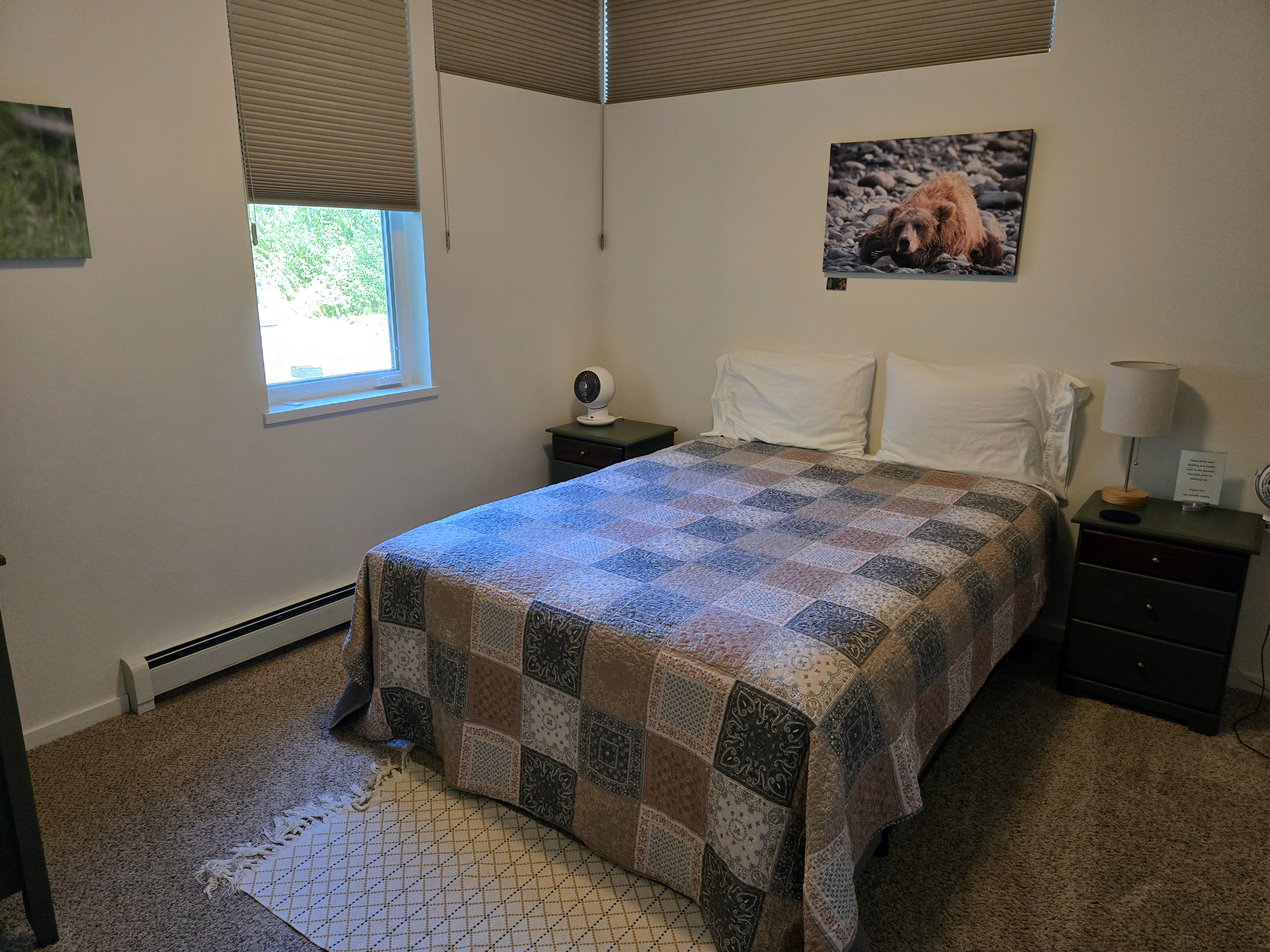 Seward (Kenai Peninsula): Seward has plenty of lodging options right in town, including hotels and vacation rentals close to the waterfront. Booking early increases your chances of staying centrally, especially in summer. By the time we booked, many in-town options were already taken, so we stayed in a cottage about ten minutes outside of Seward, which worked well overall. The house had two bedrooms and bathrooms (one on each floor) plus a loft with a queen bed and comfortably accommodated our group. The living room had a TV, which made it easy to relax together in the evenings. The kitchen was well equipped, and we appreciated the thoughtful welcome basket with local brochures and snacks. The hosts even provided two binoculars, which came in handy for wildlife spotting. One feature I appreciated was the front yard, which had outdoor seating and a space to set up a bonfire, making it a nice spot to spend time outdoors when the weather cooperated. There were some trade-offs. Cell service was spotty, and Wi-Fi was inconsistent, particularly on the lower floor. The wooden floors were squeaky and noisy, with a few loose planks, and the mattresses were on the softer side. Each room had a personal fan, which helped, as there was no air conditioning. Despite these minor issues, the cottage was comfortable, family-friendly, and well located for exploring Seward and the Kenai Peninsula.