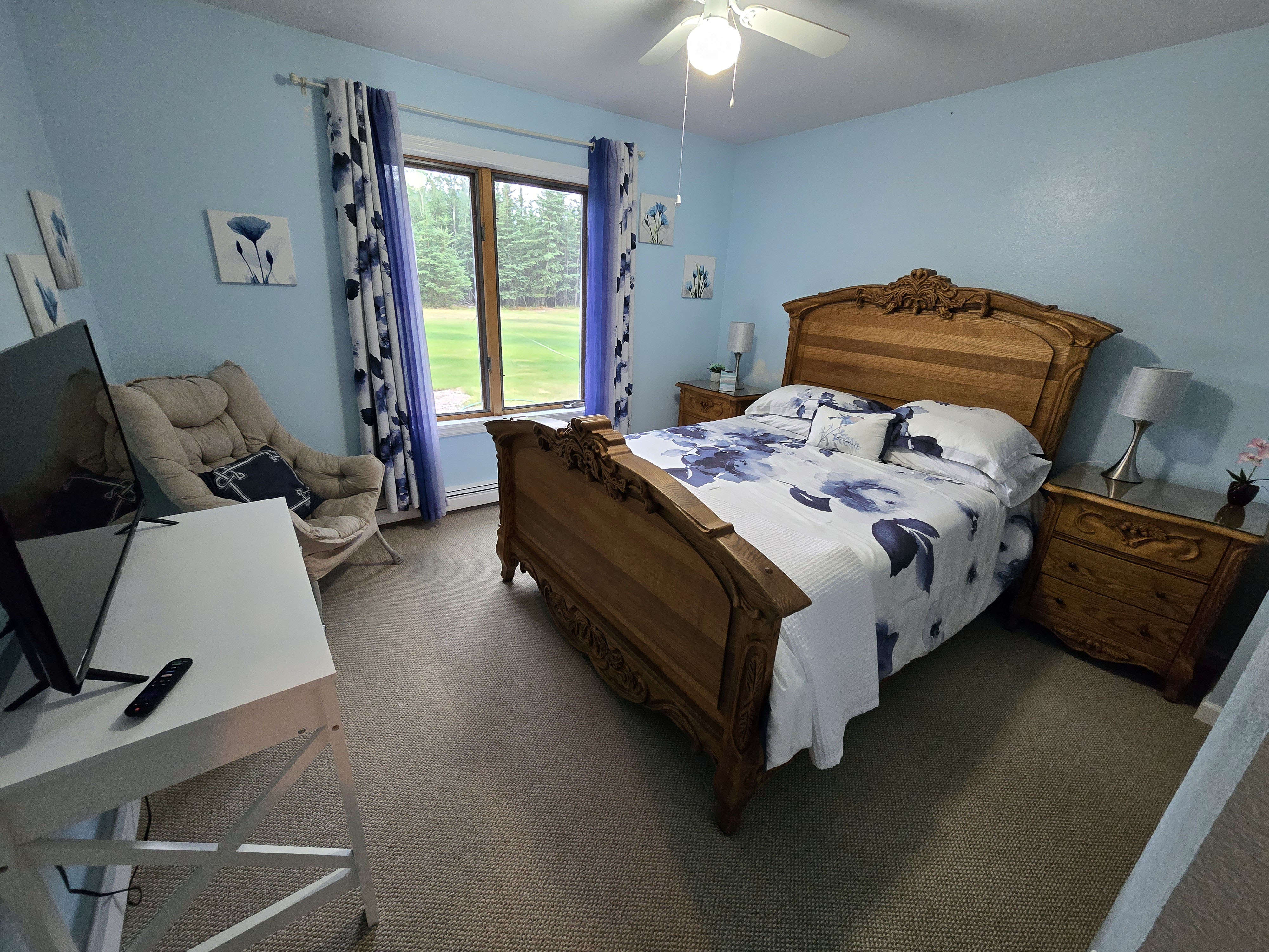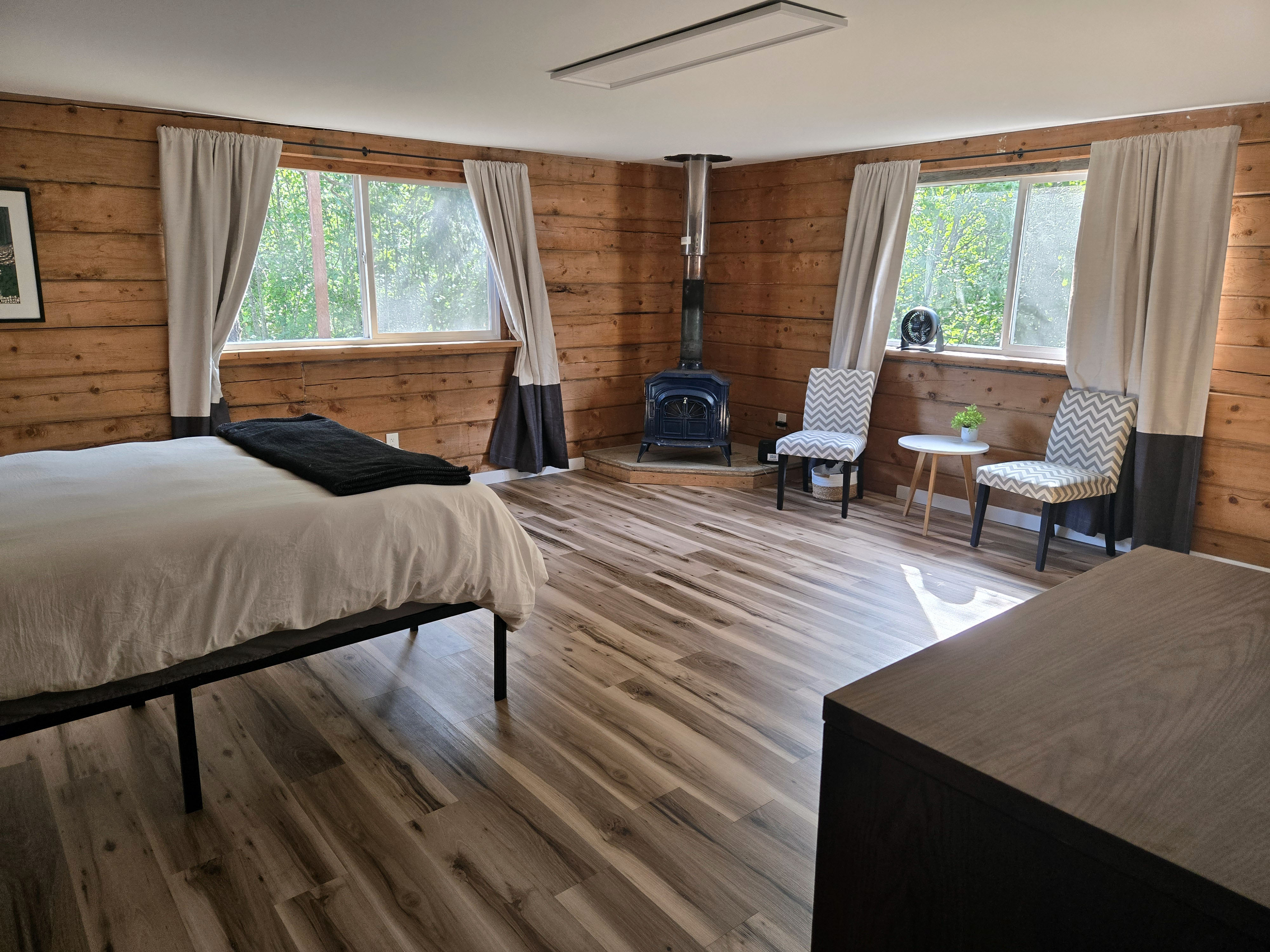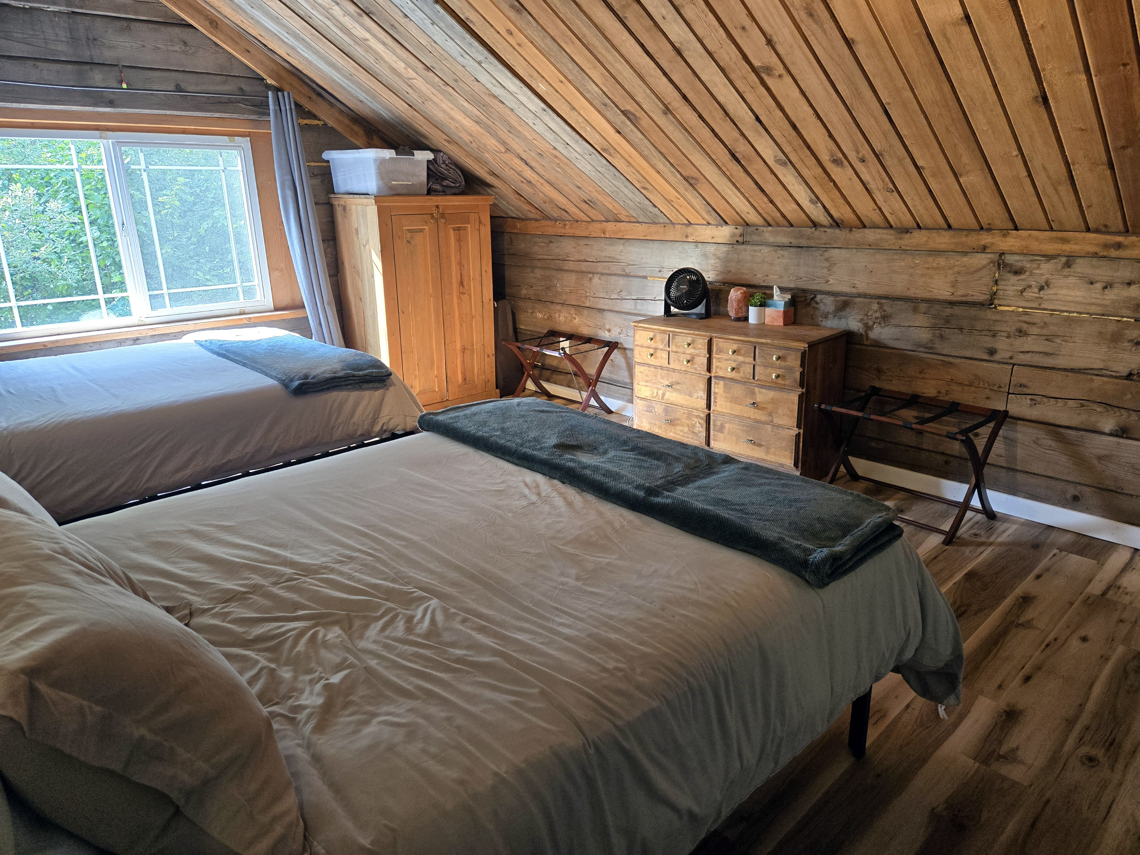 Seward (Kenai Peninsula): Seward has plenty of lodging options right in town, including hotels and vacation rentals close to the waterfront. Booking early increases your chances of staying centrally, especially in summer. By the time we booked, many in-town options were already taken, so we stayed in a cottage about ten minutes outside of Seward, which worked well overall. The house had two bedrooms and bathrooms (one on each floor) plus a loft with a queen bed and comfortably accommodated our group. The living room had a TV, which made it easy to relax together in the evenings. The kitchen was well equipped, and we appreciated the thoughtful welcome basket with local brochures and snacks. The hosts even provided two binoculars, which came in handy for wildlife spotting. One feature I appreciated was the front yard, which had outdoor seating and a space to set up a bonfire, making it a nice spot to spend time outdoors when the weather cooperated. There were some trade-offs. Cell service was spotty, and Wi-Fi was inconsistent, particularly on the lower floor. The wooden floors were squeaky and noisy, with a few loose planks, and the mattresses were on the softer side. Each room had a personal fan, which helped, as there was no air conditioning. Despite these minor issues, the cottage was comfortable, family-friendly, and well located for exploring Seward and the Kenai Peninsula.