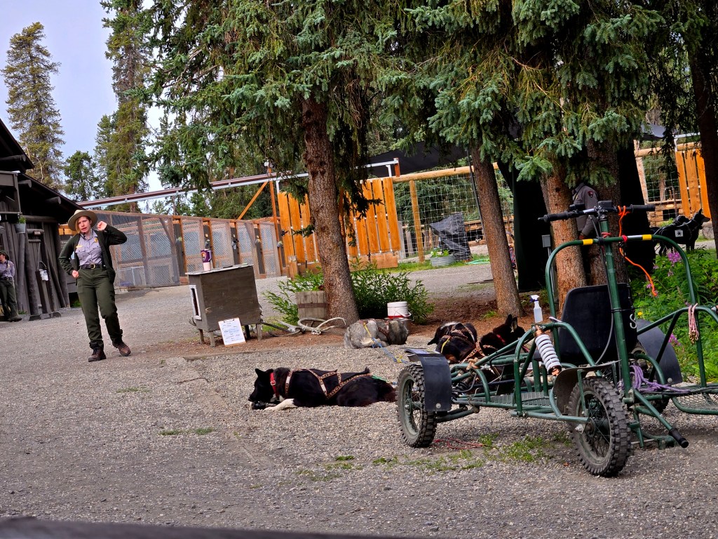 A) Denali Sled Dog Kennels :We started the day with a visit to the Denali Sled Dog Kennels, which is one of the most distinctive experiences you can have in the park. Unlike many places where sled dogs are more of a tourist attraction, Denali’s sled dogs are working huskies and are the only dogs allowed to live and work inside the national park, helping rangers patrol the park in winter. The sled dog demonstrations and talks are offered three times a day—at 10:00 AM, 2:00 PM, and 4:00 PM, and are completely free. If you’re aiming for the 10:00 AM tour, it’s best to be at the Denali Visitor Center by around 9:15 AM to catch the park bus that takes you to the kennels. The ride itself is short, roughly 10–15 minutes, and the bus driver and ranger provide some helpful context along the way. Once there, you’re given time to walk around, meet the dogs, and interact with them. Many of the dogs are incredibly friendly and clearly love the attention. it’s hard not to smile watching them eagerly lean in for pets. After that, there’s a ranger-led talk explaining the history and role of sled dogs in Denali, how they’re trained, and how they’re still used today. Seeing the dogs harnessed to a sled and watching a short demonstration was both informative and surprisingly moving. Overall, it’s an easy, enjoyable activity that takes about two hours total, including transportation.