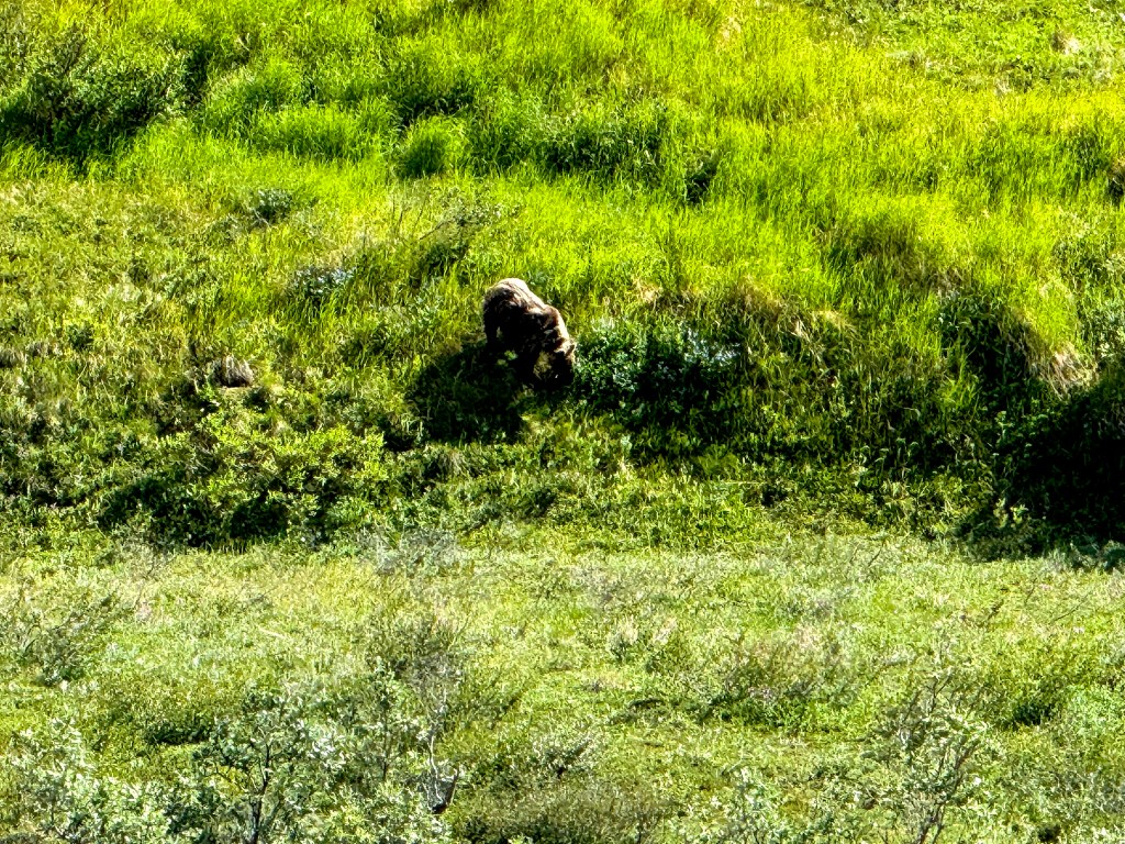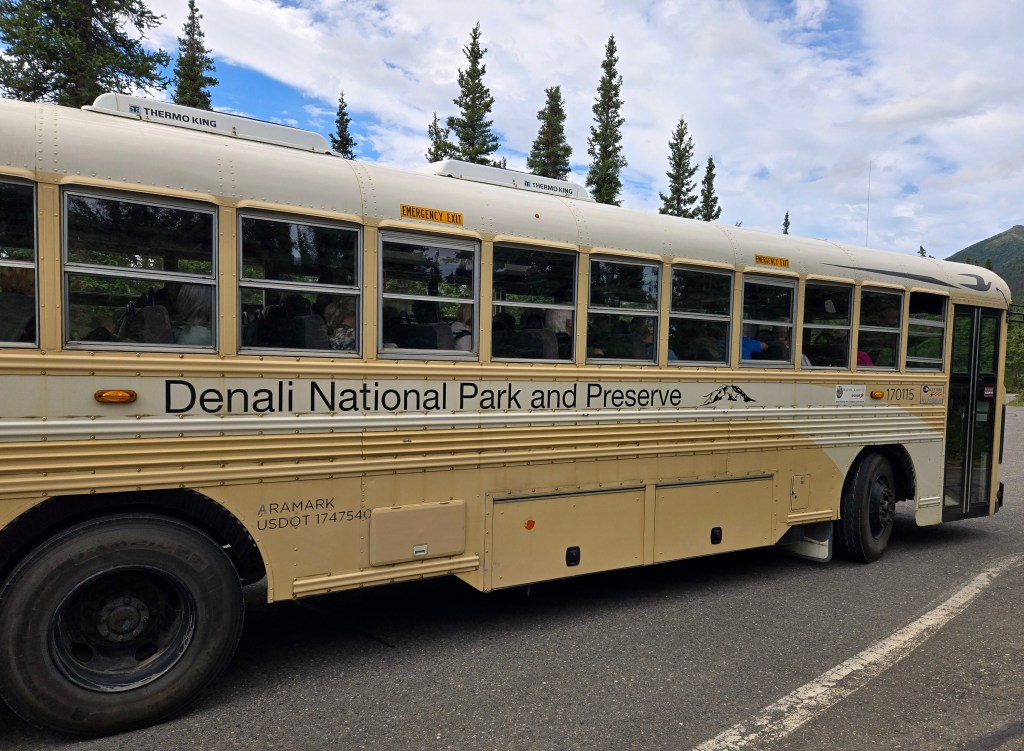 B) Tundra Wilderness Narrated Bus Tour : While you can explore the park by car, private vehicles are only allowed to drive a limited portion of Denali Park Road. During our visit, cars were permitted up to around mile 15, after which access is restricted to park-operated bus services. If you want to experience the vastness of the park, travel deeper into the wilderness, and have the best chance of seeing wildlife, taking one of the park’s bus services is essential. After the sled dog visit, we had lunch and then headed out for the Tundra Wilderness Tour, the most popular narrated bus tour offered by the park. Denali offers several types of bus services, and it’s important to understand the difference: 1) Narrated bus tours(like the Tundra Wilderness Tour) are guided experiences where the driver also serves as a naturalist. These tours focus on wildlife spotting and interpretation but are not hop-on, hop-off. 2) Transit buses (park shuttles)allow you to get off at designated points to hike or explore independently and then re-board later. These are better if your goal is hiking deeper in the park. The Tundra Wilderness Tour is ideal if your priority is seeing wildlife and traveling deep into the park without worrying about navigation or logistics, but it comes with trade-offs. We had a 12:00 PM tour booked and arrived on time at the Denali Bus Depot, one of the designated pickup points. However, despite having a noon reservation, we were reassigned to a 1:30 PM bus, which meant waiting around for over an hour. When the bus finally arrived, it was completely full, which was disappointing after such a long wait. Thankfully, there were six seats close to each other that we could sit together as a group. The bus itself was very basic. There were no cup holders, the seats were not particularly comfortable, and legroom was tight. The windows were large but difficult to slide open, and the raised floor under the window seats made sitting there uncomfortable for long stretches. Sitting in the same position for nearly five hours was tiring. The driver doubles as the guide, and this was the biggest mixed bag for us. While the information was knowledgeable, the commentary was non-stop for the entire five hours. There was little quiet time to simply take in the scenery or talk among us. Much of the narration went beyond what we were seeing, including long tangents and zoology-style lectures about animals that weren’t present, which became overwhelming. A more balanced approach with moments of silence would have made the experience far more enjoyable. You’re only allowed to get off the bus twice, both times for bathroom breaks. There are no opportunities to stop and explore viewpoints or walk around otherwise. If you’re someone who likes to move, stretch, or linger in places, this can feel restrictive. However, despite all of this, it’s hard to deny the value of the tour. The drive itself is entirely scenic, and the bus takes you well beyond where private vehicles can go, offering a true sense of Denali’s vastness. We saw nearly all of the wildlife listed on the brochure, some of them multiple times including grizzly bears, moose, caribou, golden eagles, and even the famous Alaskan ground squirrel (which the guide jokingly referred to as having the caloric equivalent of a “cheese pizza” for a bear). The only animal we didn’t see was a wolf. Every wildlife sighting was genuinely exciting, and in that sense, the tour delivered exactly what it promised. By the end of the day, though, we were exhausted, despite having spent most of the time seated. Overall, we felt conflicted. The tour is almost a must-do if you want to see wildlife and experience Denali beyond the road-accessible area, but the lack of comfort, limited flexibility, and overwhelming narration made it less enjoyable than it could have been.