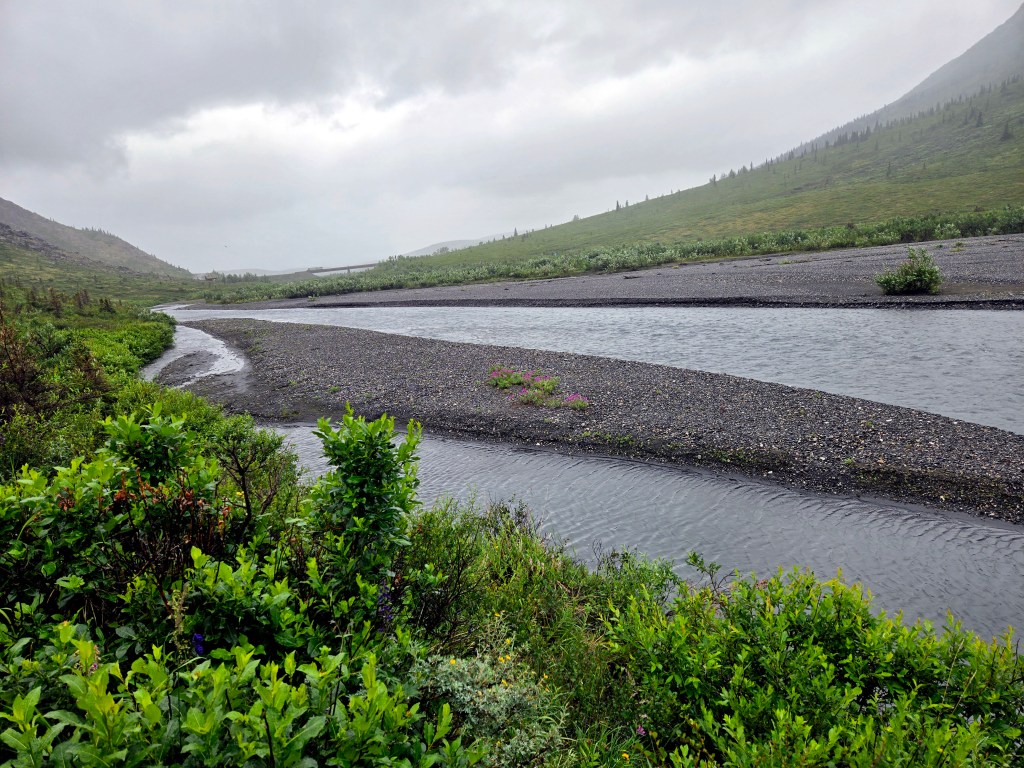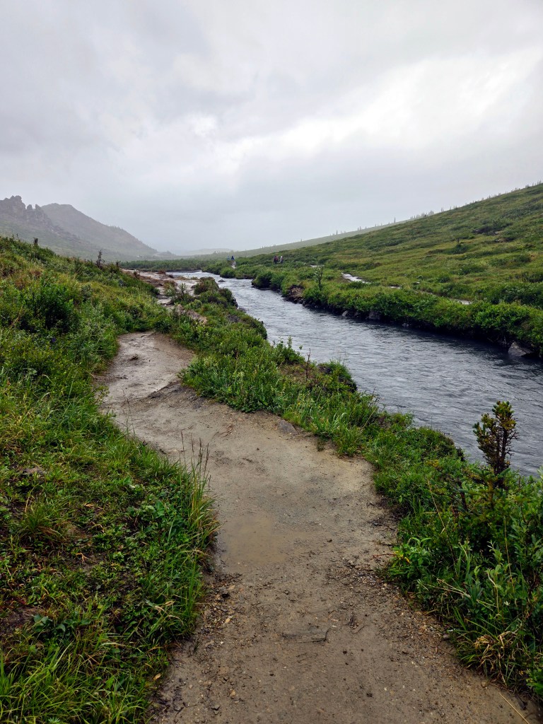 D) Savage River Loop Trail: After lunch, we drove deeper into the park to around mile 15 and explored the Savage River Loop Trail. This is an easy, mostly flat loop of about 2 miles round trip, following the river and offering a very peaceful walking experience.The sound of the flowing river, wide open views, and quiet surroundings make this trail especially calming. We didn’t complete the entire loop because we had a timed ATV tour later in the afternoon, but even the portion we walked was enjoyable and relaxing. If you have more time, this trail pairs nicely with the nearby Savage Alpine Trail, which is longer and more strenuous.
