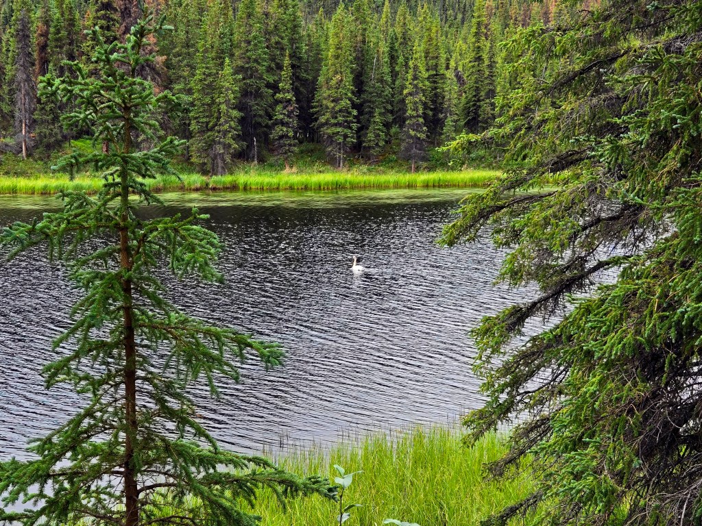 F) Triple Lakes Trail: After two very full days in Denali, day 3 was all about getting out on our own and hiking, and the Triple Lakes Trail turned out to be the perfect choice. We did the Triple Lakes Trail as a round-trip hike, starting and ending at the Tsenesdghaas Na’ Trailhead, where there is plenty of parking, making logistics simple. The hike is about 6 miles round trip and took us roughly 4 to 4.5 hours to complete at a comfortable, unhurried pace. The trail is best described as scenic, refreshing, and moderately challenging, engaging without being exhausting. What makes this hike especially enjoyable is how varied and immersive the landscape feels. The trail winds through lush, dense vegetation and forest, opening up periodically to reveal serene, beautifully framed lakes that feel tucked away and peaceful. It’s the kind of hike where the surroundings constantly shift just enough to keep things interesting, without ever feeling overwhelming. Reaching the lakes felt rewarding, and the entire hike had a calm, grounding quality to it, a wonderful contrast to the busier, more structured activities from earlier days. One of the great things about the Triple Lakes Trail is its flexibility. Instead of turning back at the lakes, hikers can choose to continue onward, extending the hike to about 9.5 miles, which eventually ends near the Denali Visitor Center. If you choose this option, you’ll need to take the park shuttle back to your car at the Tsenesdghaas Na’ Trailhead. You can also do this hike in reverse, starting at the Denali Visitor Center and ending at the trailhead, but this direction is slightly more difficult, with more elevation gain earlier in the hike. For us, starting at the trailhead and turning back after the third lake to end back at the trailhead, worked perfectly and allowed us to enjoy the trail without worrying about shuttle timing.