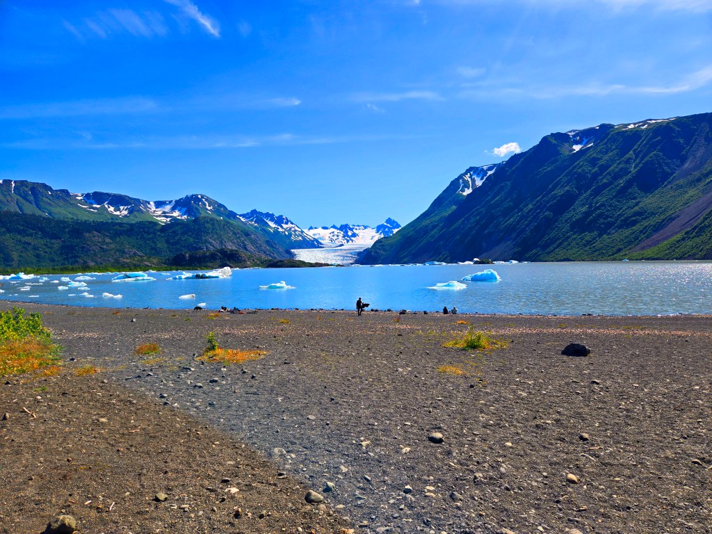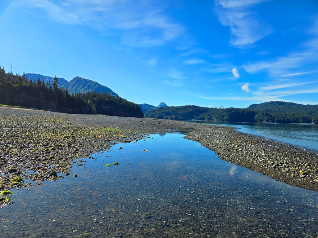 B) Grewingk Glacier Lake Hike (Kachemak Bay State Park):One of the highlights of our time in Homer was hiking to Grewingk Glacier Lake in Kachemak Bay State Park, a stunning and very popular backcountry hike that requires a water taxi to access. Water taxis can be booked in advance or arranged a day before (and sometimes even the day of), but for peace of mind, especially in peak summer, I highly recommend booking at least a day ahead. When you book, the company will schedule both your drop-off and pick-up times, which means timing matters a lot for this hike. A key logistical detail to understand is that most water taxi operators drop hikers at the Grewingk Glacier Lake Trailhead in the morning and pick them up later from the Saddle Trailhead. This route totals roughly 6 miles, with about 4 miles from the glacier trailhead to the lake, followed by another 2 miles descending the Saddle Trail. This direction is chosen because morning water conditions are typically calmer for drop-off at the glacier side, while afternoon waters can be choppier, which we definitely experienced on the return ride. This direction also makes the hike more manageable. Starting from the Saddle Trailhead and hiking up to the lake would be much more strenuous, even though it’s a shorter distance. In contrast, going from the glacier trailhead to the lake is mostly easy, though it involves walking on uneven, rocky terrain rather than a paved path. The Saddle Trail, on the other hand, is moderately strenuous, with rocky, curvy, and steep sections. The final 0.4 miles descending the Saddle Trail is particularly steep and requires careful footing, even when going downhill. The entire hike typically takes 4–5 hours, depending on pace and conditions. Different water taxi companies allow different time windows—some offer 4 hours, others 4.5, 5, or even 5.5 hours. Our operator allowed only 4 hours, which meant we could spend no more than about 30 minutes at the lake before needing to head back. If I were to do this again, I would absolutely choose a company that allows more time, as the lake is a place you’ll want to linger. In our case, due to low tide, the water taxi couldn’t drop us exactly at the glacier trailhead. We were dropped a bit farther away and had to walk an additional mile along a rocky beach to reach the trail, bringing our total distance to approximately 6.7 miles round-trip. Despite all of this, the hike was absolutely worth it. Grewingk Glacier Lake is breathtaking; a serene, turquoise lake dotted with floating icebergs, with the glacier looming directly in front of you. The setting is peaceful, quiet, and incredibly picturesque. The descent down the Saddle Trail is also beautiful, with colorful vegetation and expanding views of Kachemak Bay as you get closer to the shoreline. Water taxi operators provide binoculars for the ride across the bay, which adds to the experience, as you can scan for wildlife while crossing the water. Overall, this hike is a must-do in Homer if you’re physically able and comfortable with uneven terrain and time-bound logistics. It’s not effortless, but it’s one of those rare experiences that feels deeply rewarding—a combination of adventure, scenery, and solitude that stays with you long after the hike is over.