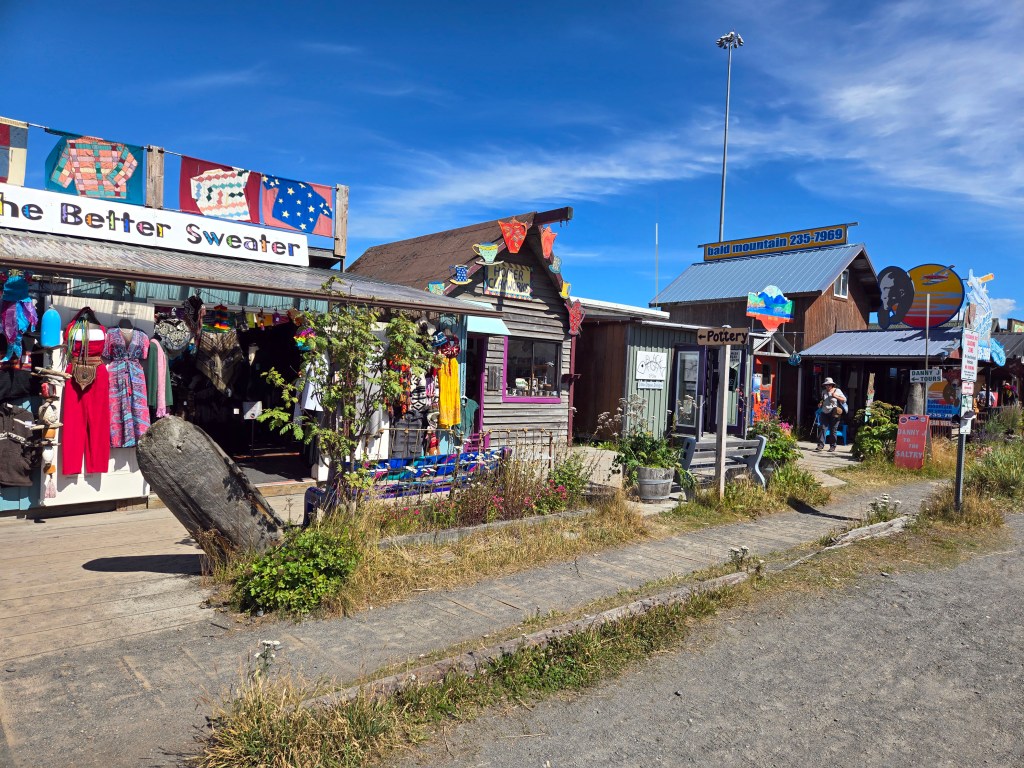 C) Homer Town & The Spit: Homer itself has a relaxed, artsy, coastal vibe that feels very different from other Alaska towns. The heart of the town is Homer Spit, a narrow strip of land stretching into Kachemak Bay, lined with restaurants, shops, fishing charters, and marinas. It’s a great place to wander, grab a meal, and watch boats come and go. You’ll often see seabirds, eagles, and fishing activity right from the docks. The town also has a strong local art scene, with galleries and small shops scattered throughout.