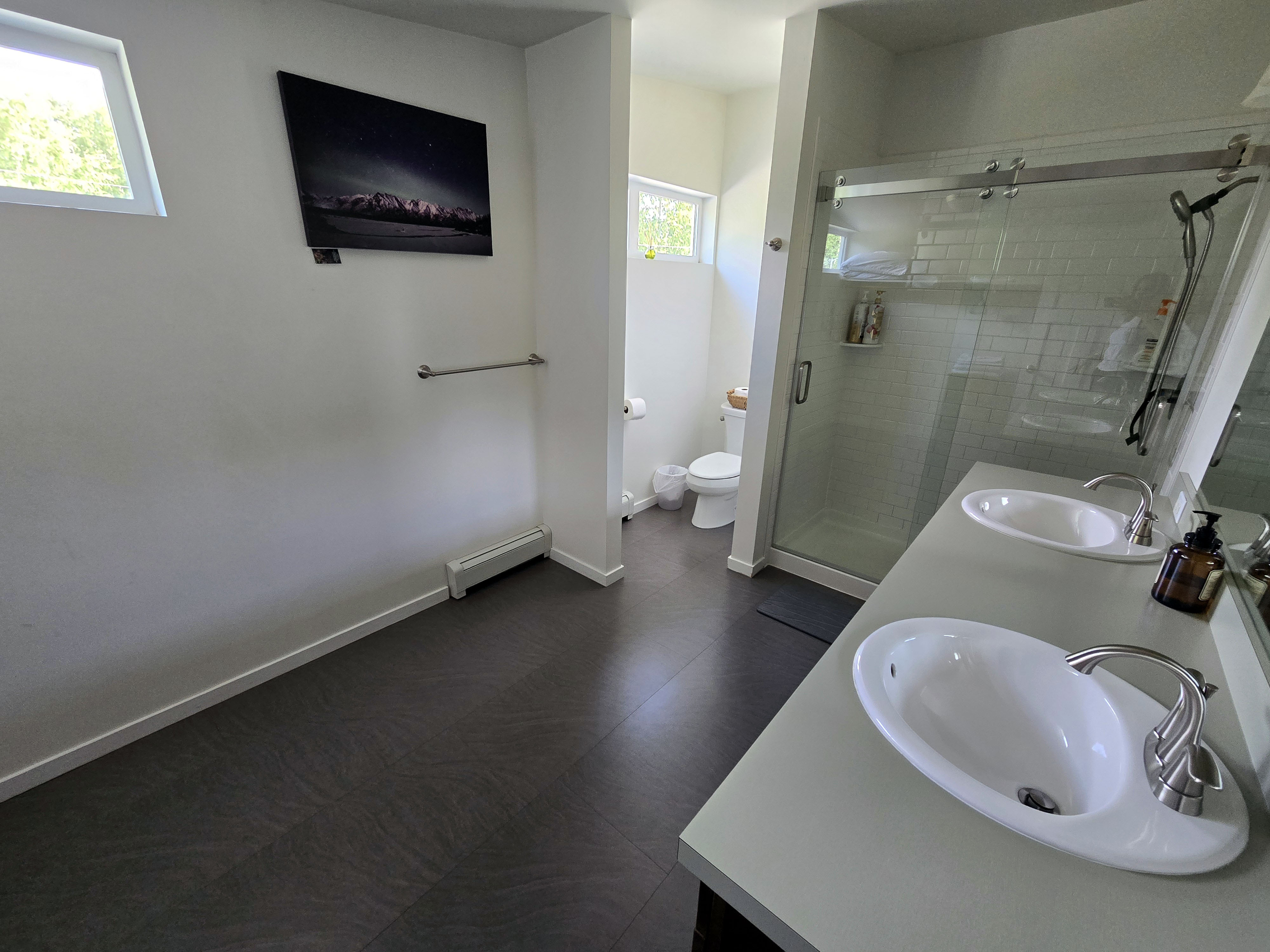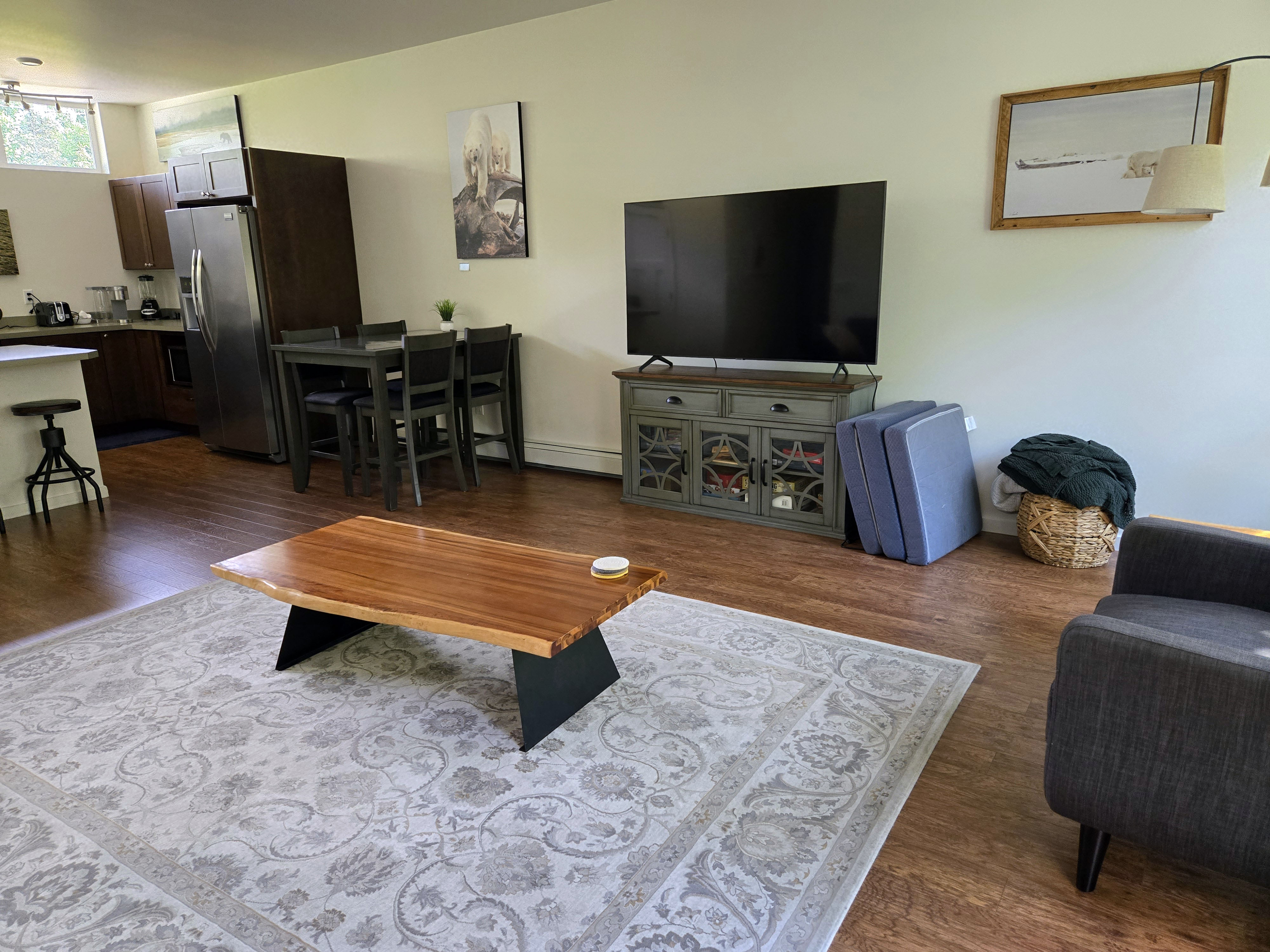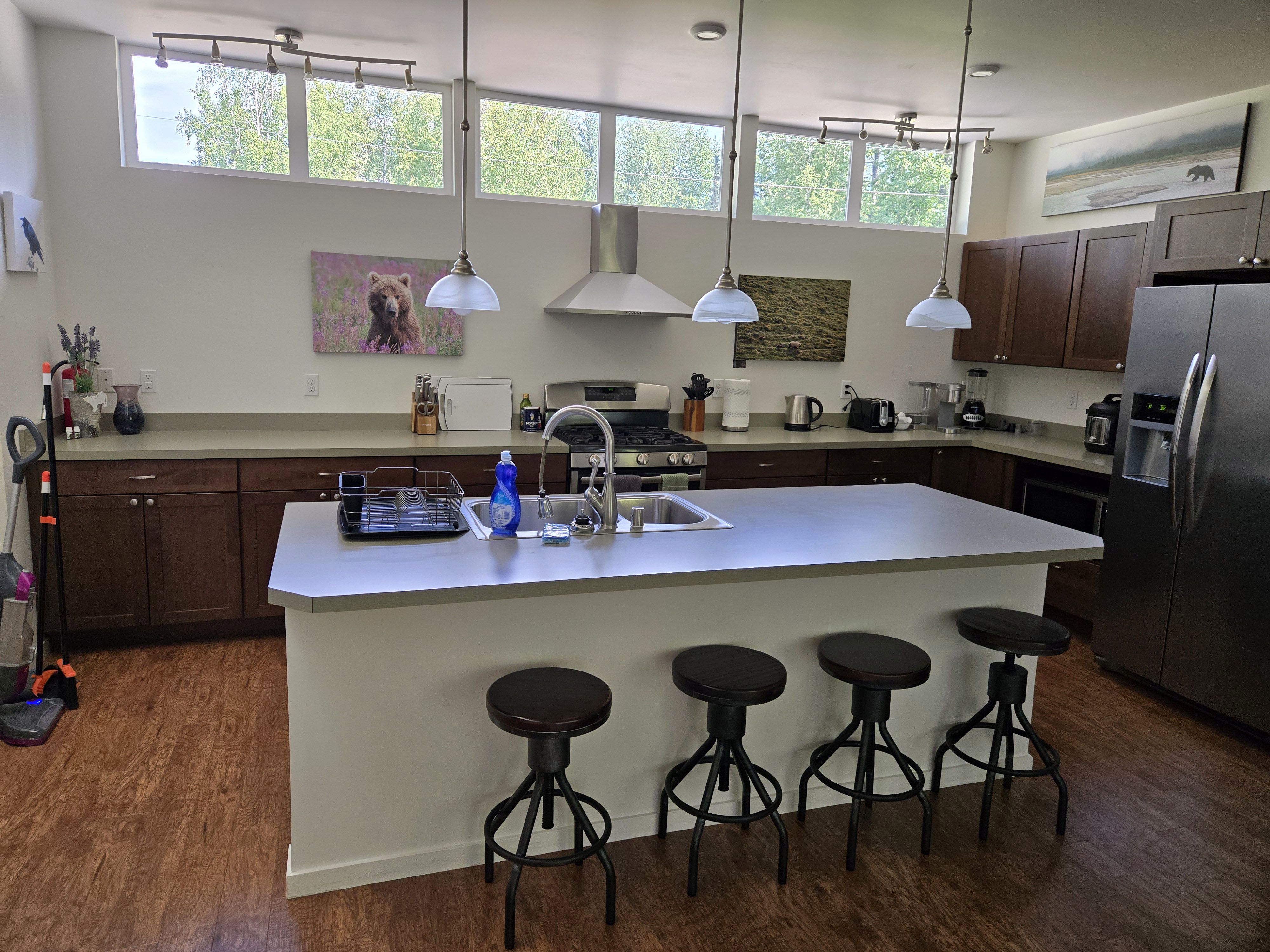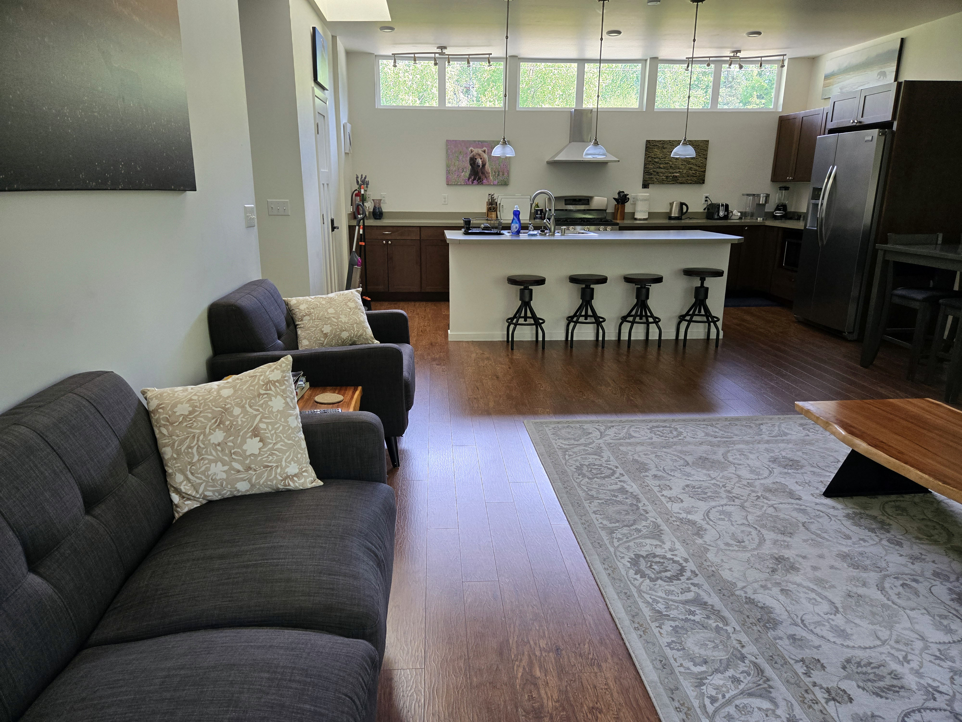 Anchorage (Last Night Before Departure): We also stayed one final night in Anchorage before flying out, choosing a location that balanced convenience and calm. The house was about 15 minutes from the airport, which was ideal for an easy departure day, while still being close to grocery stores, gas stations, and restaurants for a relaxed final evening. The home itself was a comfortable three-bedroom, two-bathroom house with plenty of space for our group. One of the nicest features was that it overlooked a small creek, which added a quiet, tranquil feel… a lovely contrast to travel-day logistics and a peaceful way to wind down after an active trip. The house had a washer and dryer, which was incredibly helpful for doing a final round of laundry before heading home. Overall, it was spacious, practical, and very comfortable, and we didn’t have any notable complaints. It worked perfectly as a low-stress, convenient final stop to wrap up our Alaska journey.